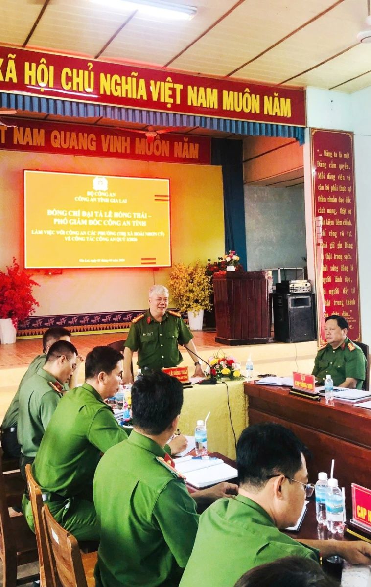 Chiều ngày 02/4/2026, tại trụ sở Công an phường Hoài Nhơn Nam, đồng chí Đại tá Lê Hồng Thái - Phó Giám đốc Công an tỉnh Gia Lai đã có buổi làm việc với Công an các phường (thuộc Thị xã Hoài Nhơn cũ) về tình hình công tác Công an Quý I/2026.