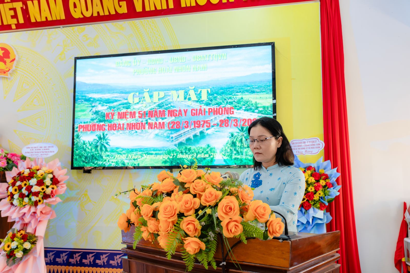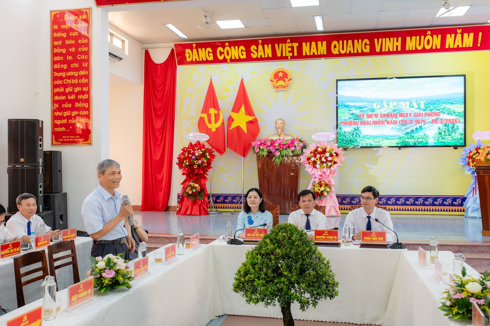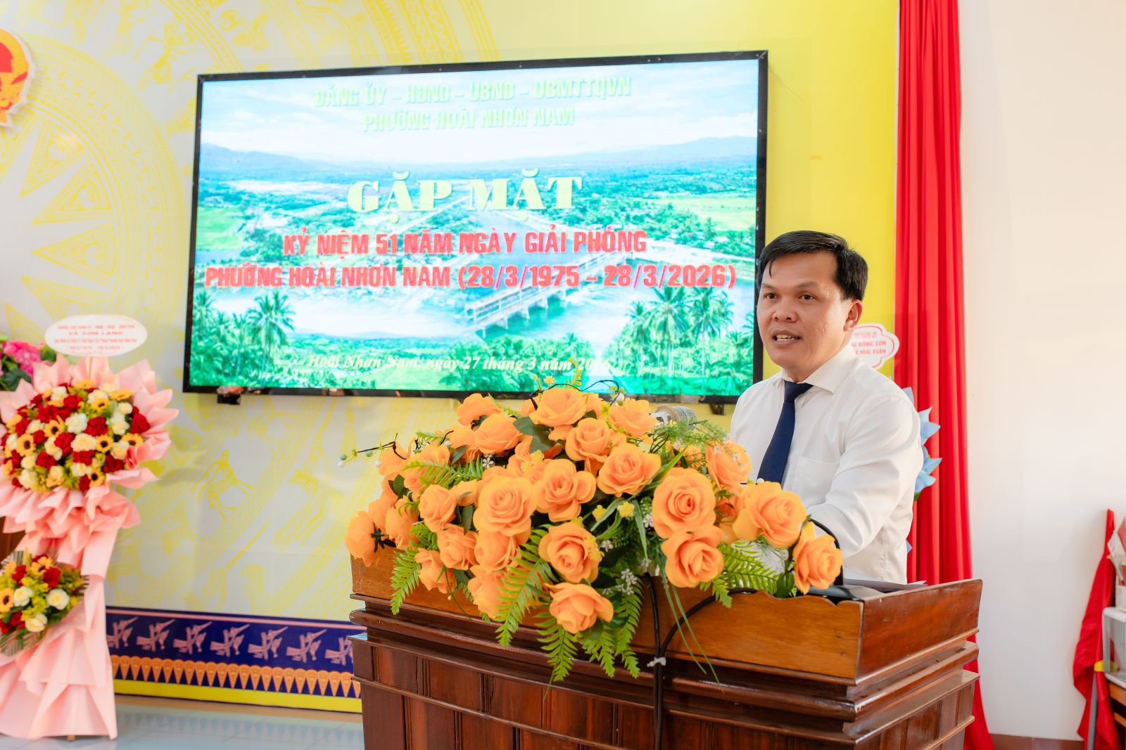 Chiều ngày 27/3/2026, Đảng ủy – HĐND – UBND – Ủy ban MTTQ Việt Nam phường Hoài Nhơn Nam đã tổ chức Chương trình gặp mặt kỷ niệm 51 năm Ngày giải phóng phường (28/3/1975 – 28/3/2026) trong không khí trang nghiêm, ấm áp và thắm đượm nghĩa tình. Tham dự chương trình có các đồng chí nguyên lãnh đạo địa phương qua các thời kỳ; các cô, các chú trong Tổ liên lạc Ban công tác Hoài Tân, Hoài Xuân; cùng các đồng chí Ủy viên Ban Thường vụ Đảng ủy, Ủy viên Ban Chấp hành Đảng bộ phường; lãnh đạo các cơ quan, ban, ngành, đoàn thể; bí thư, phó bí thư các chi bộ trực thuộc.