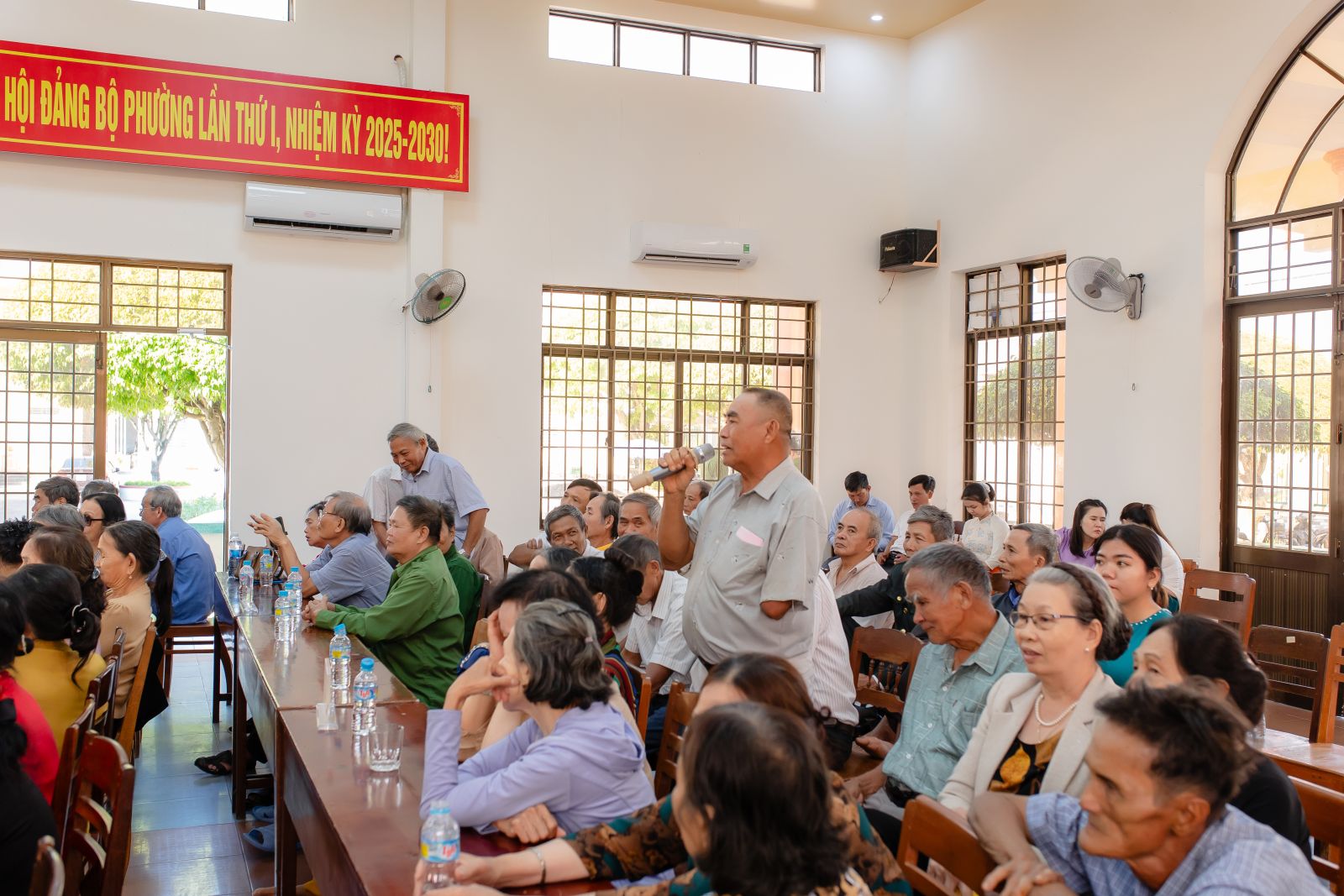 Chủ trì buổi gặp mặt có các đồng chí: Nguyễn Xuân Tú – Bí thư Đảng ủy, Chủ tịch HĐND phường; Bùi Thị Thu Trúc – Phó Bí thư Thường trực Đảng ủy; Trần Văn Thư – Phó Bí thư Đảng ủy, Chủ tịch UBND phường.