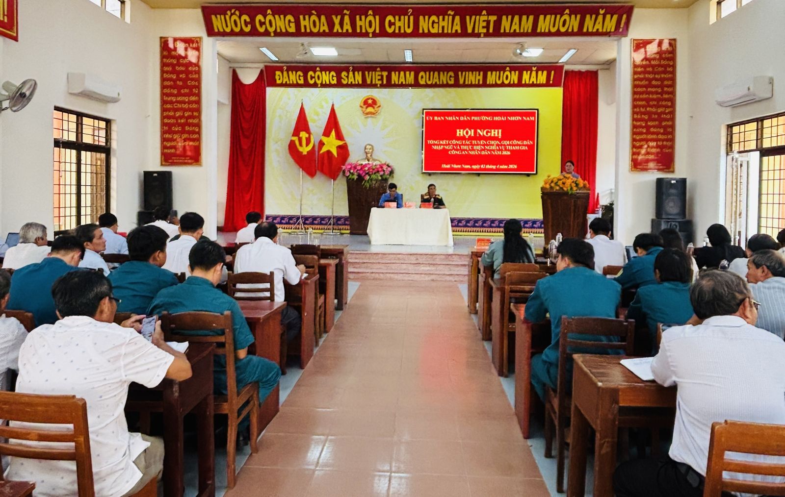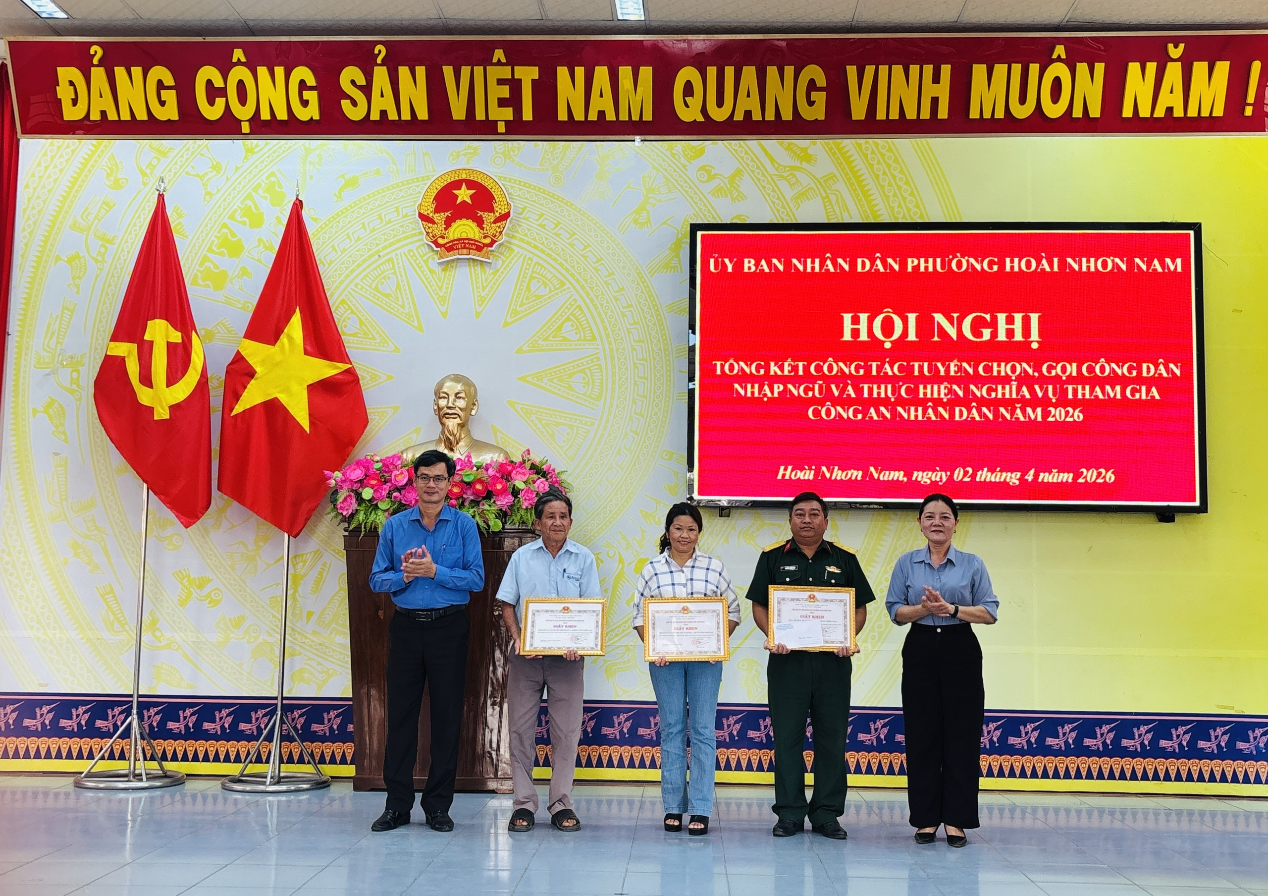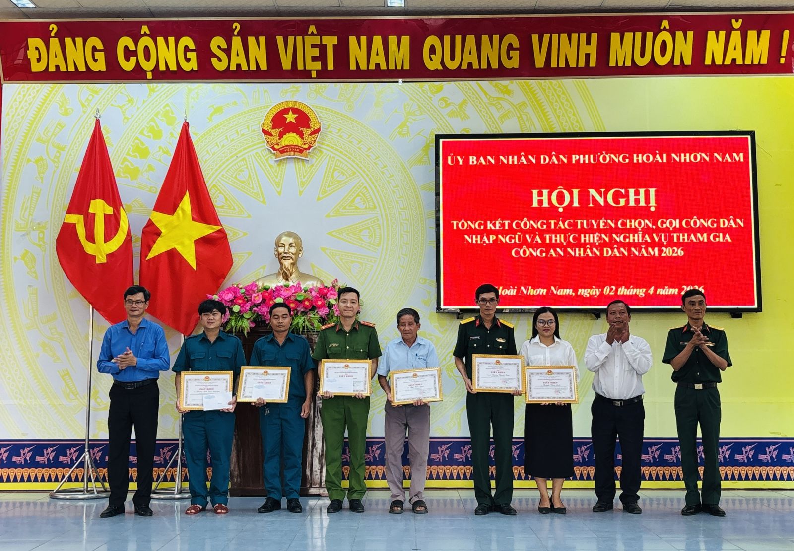 Sáng ngày 02/4/2026, UBND phường Hoài Nhơn Nam tổ chức Hội nghị tổng kết công tác tuyển chọn, gọi công dân nhập ngũ và thực hiện nghĩa vụ tham gia công an nhân dân năm 2026.