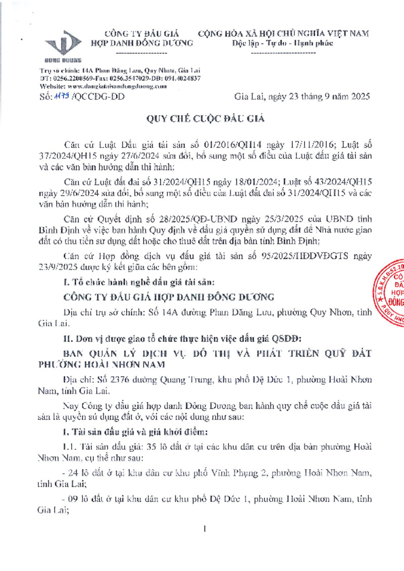 Thông báo đấu giá quyền sử dụng 35 lô đất ở tại các khu dân cư trên địa bàn phường Hoài Nhơn Nam 26/09/2025, 16:28:42 - Lượt xem: 5 Tweet Thêm vào danh sách Báo xấu Thông tin tài liệu Thông báo đấu giá quyền sử dụng 35 lô đất ở tại các khu dân cư trên địa bàn phường Hoài Nhơn Nam