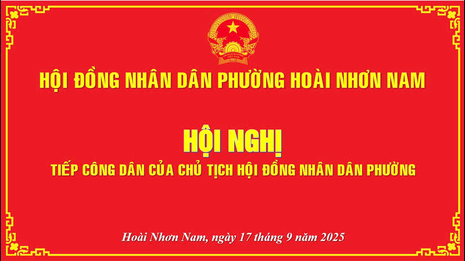 - Căn cứ Quyết định số 39/QĐ-HĐND ngày 20/8/2025 của HĐND phường Hoài Nhơn Nam về việc ban hành Quy chế tiếp công dân của Thường trực HĐND phường khóa I, nhiệm kỳ 2021-2026.