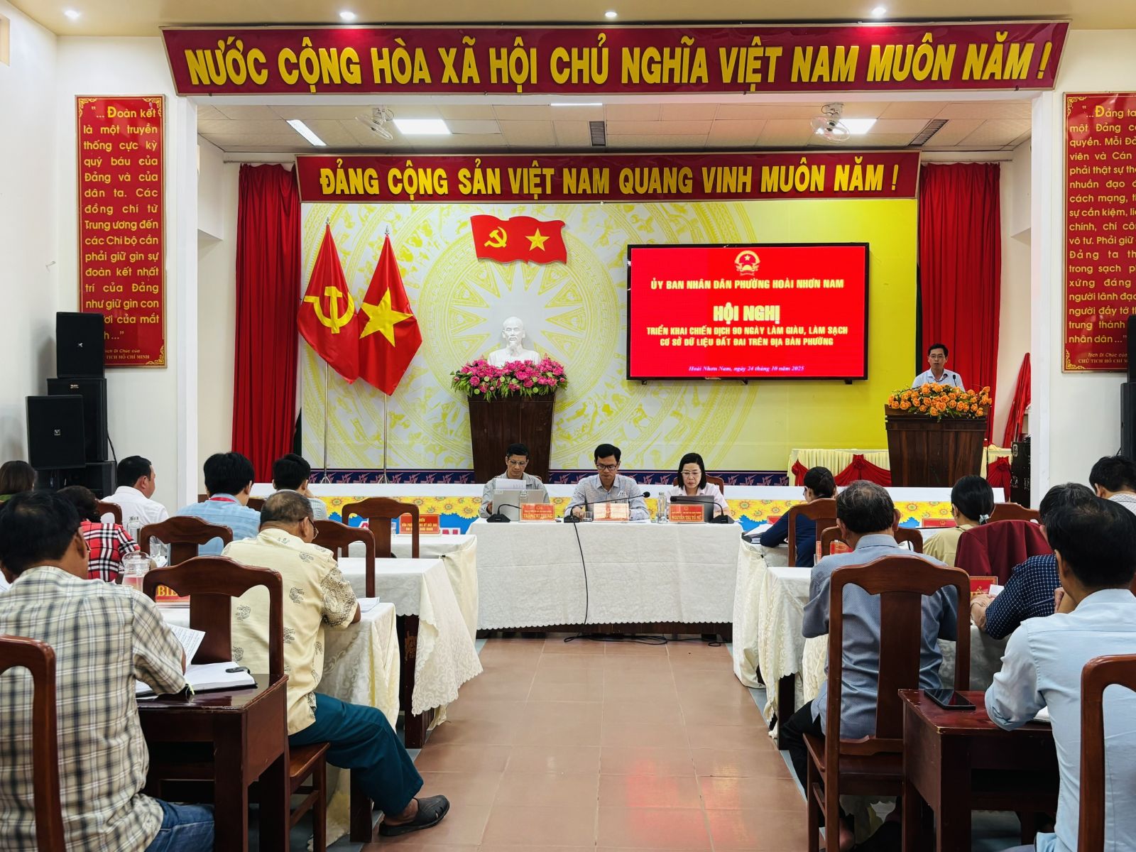 Chiều ngày 24/10, UBND phường Hoài Nhơn Nam tổ chức Hội nghị triển khai Chiến dịch 90 ngày làm giàu, làm sạch cơ sở dữ liệu đất đai trên địa bàn phường. Tham dự Hội nghị có các đồng chí: Bùi Thị Thu Trúc – Phó Bí thư Thường trực Đảng ủy; Trần Văn Thư – Phó Bí thư, Chủ tịch UBND; Lâm Ngọc Thu – UVBTV, Chủ tịch UBMTTQVN phường; lãnh đạo Chi nhánh Văn phòng đăng ký đất đai Hoài Nhơn; lãnh đạo UBND phường, các ban ngành hội đoàn thể và đại diện các khu phố trên địa bàn phường. Lãnh đạo UBND phường chủ trì Hội nghị.