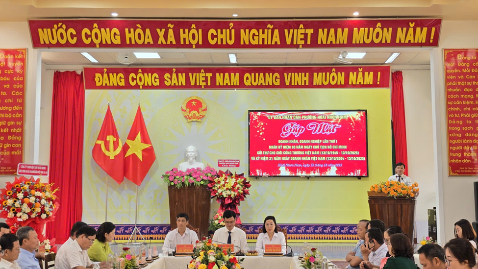 Hướng tới kỷ niệm 80 năm Ngày Chủ tịch Hồ Chí Minh gửi thư cho giới công thương Việt Nam (13/10/1945 – 13/10/2025) và 21 năm Ngày Doanh nhân Việt Nam (13/10/2004 – 13/10/2025), sáng ngày 12/10/2025, Ủy ban nhân dân phường Hoài Nhơn Nam long trọng tổ chức Gặp mặt doanh nhân, doanh nghiệp lần thứ nhất.